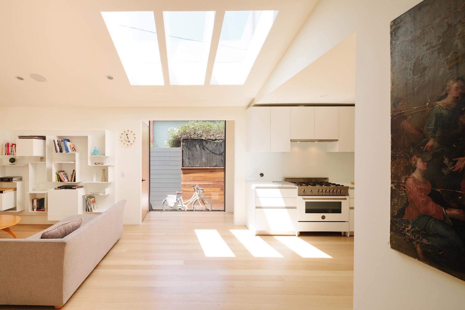 The interior renovation brings a clean, contemporary sensibility to the historic structure. Open flow, improved sightlines, and enlarged openings unify the living, kitchen, and outdoor areas. The result is a home that retains its original character while embracing a modern lifestyle centered on light, openness, and outdoor connection.
