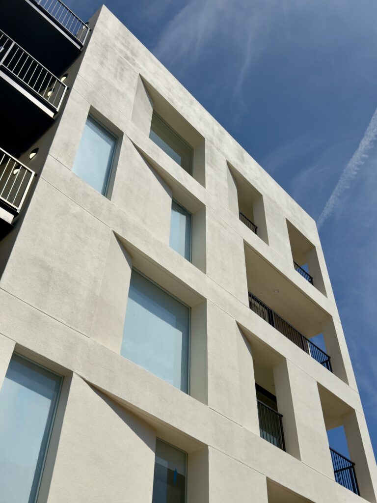 At dusk, when the apartments warm behind the grid and the reveals fill with shadow, the building does something most housing in LA doesn’t. It looks inhabited. Not just occupied. Inhabited.